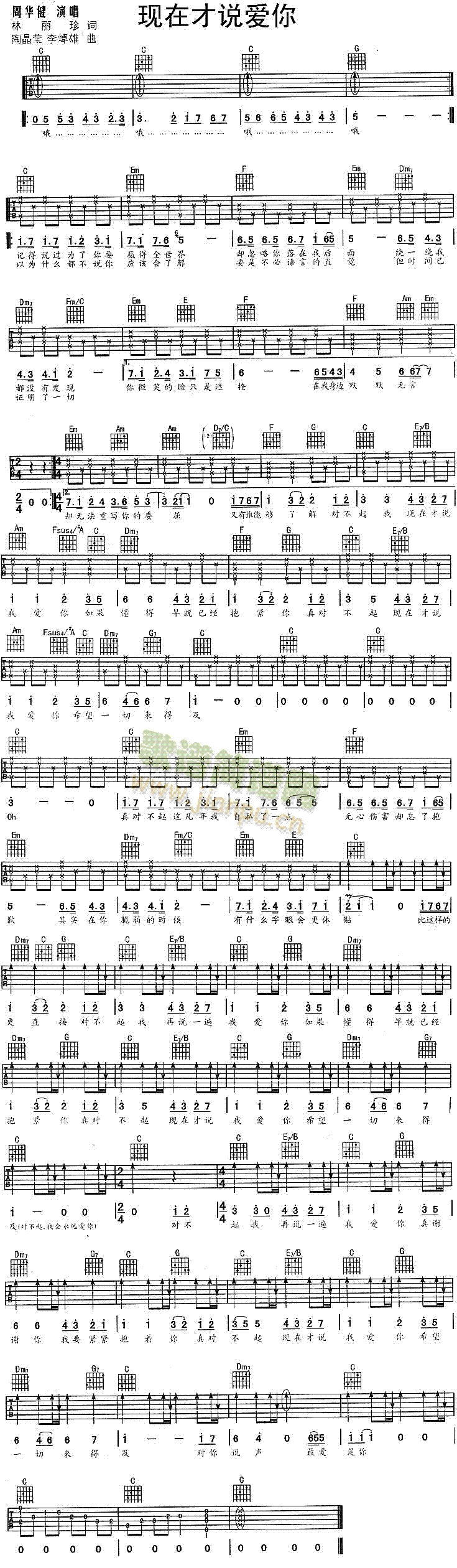 [吉他谱]现在才说我爱你 周华健