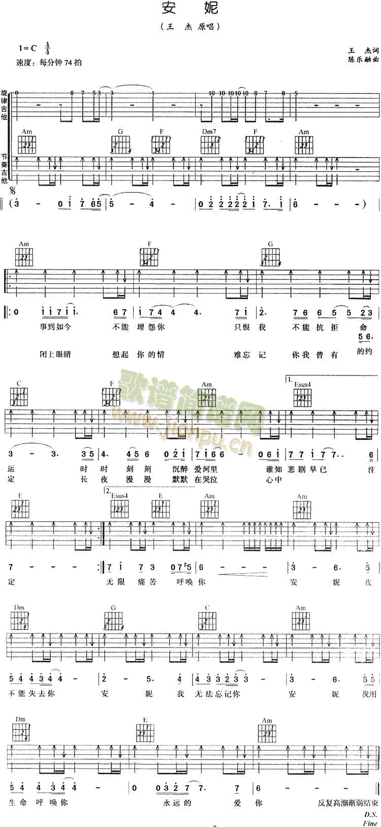 [吉他谱]安妮 (王杰) 未知