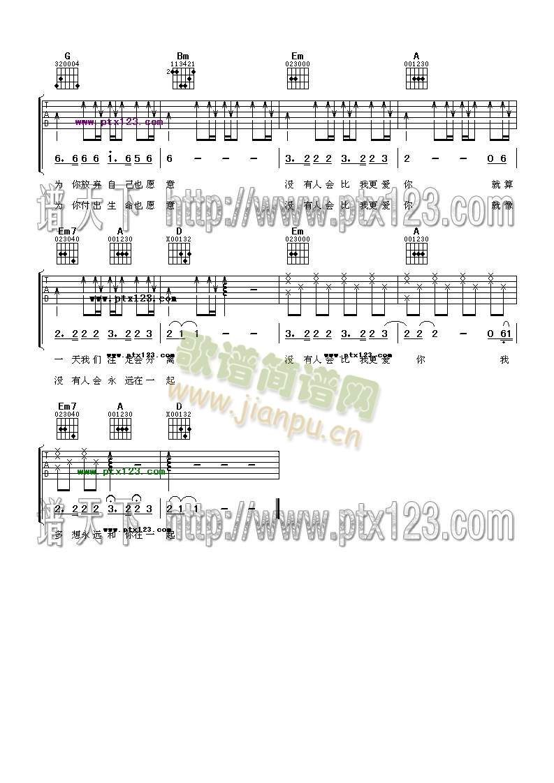 [吉他谱]没有人会比我更爱你 王筝水木年华