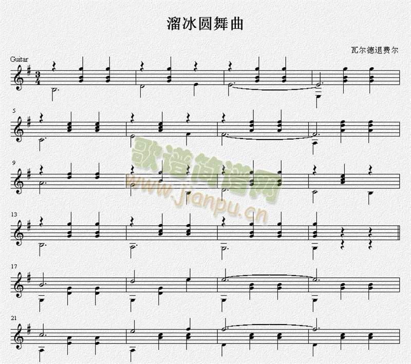 溜冰圆舞曲(古典吉他练习曲)五线谱