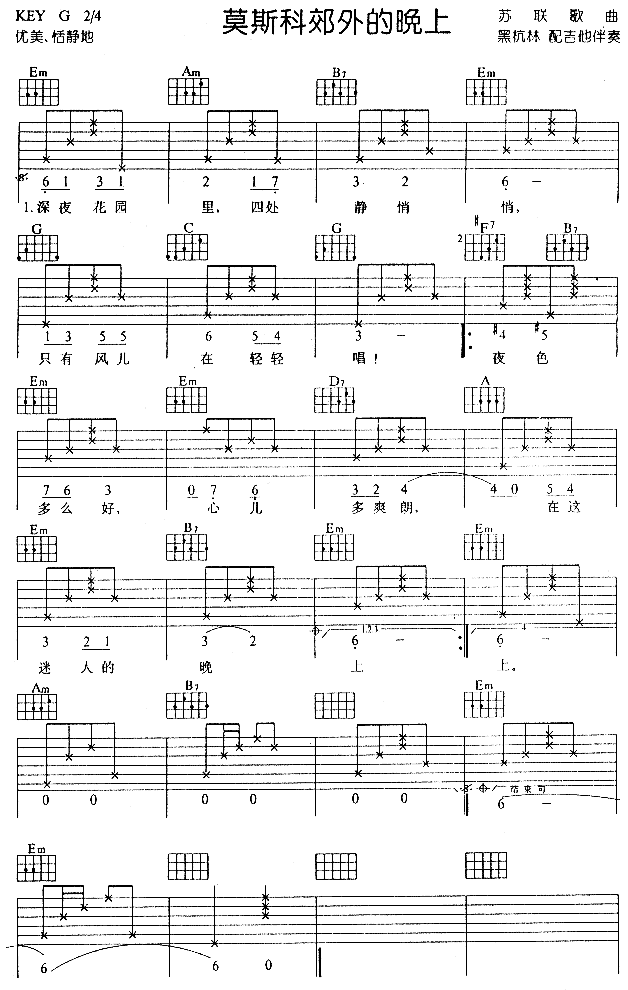 [吉他谱]莫斯科郊外的晚上(苏联民歌 ) 未知