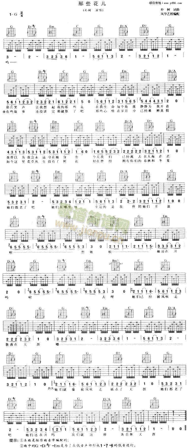 [吉他谱]那些花儿(《那时花开》片尾曲) 未知