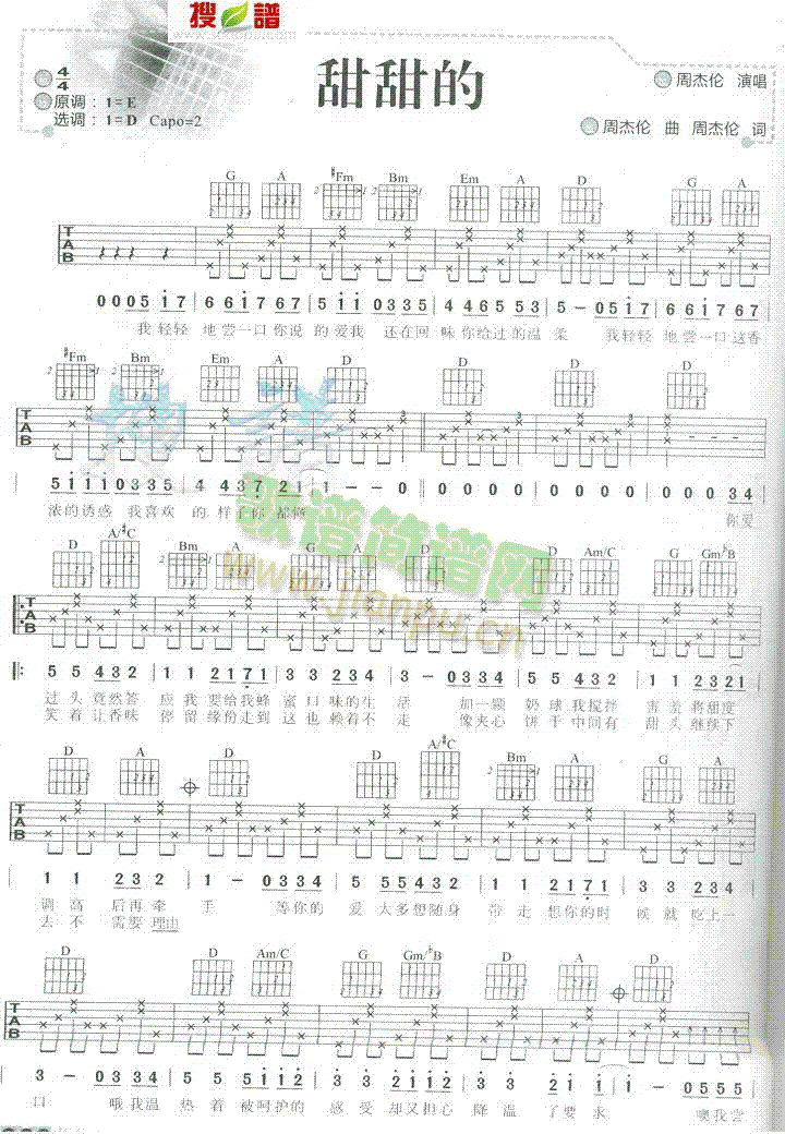 当前位置: 歌谱简谱网 > 吉他谱 > 甜甜的