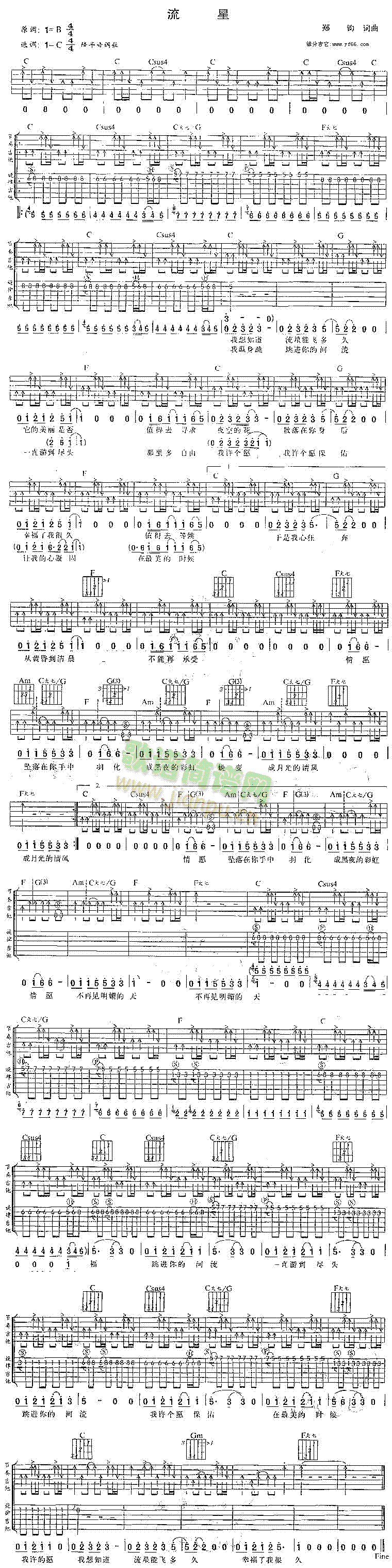 [吉他谱]流星(《流星花园》插曲) 郑钧