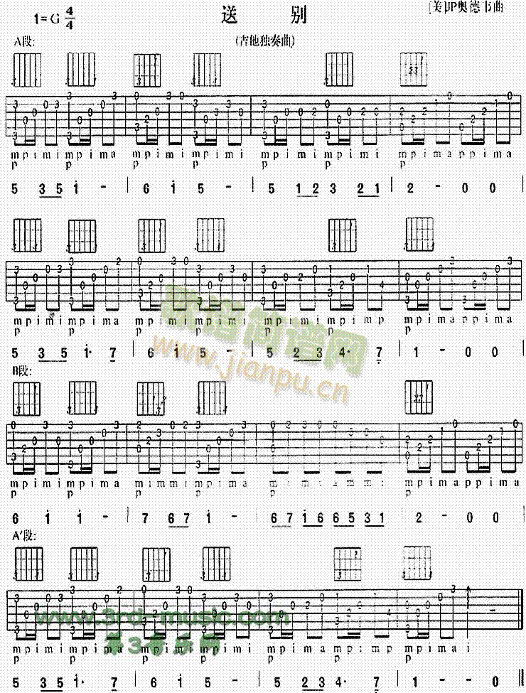 [其他乐谱]送别 [简谱版](独奏) 扬琴演奏曲谱