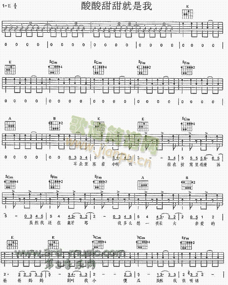 [吉他谱]酸酸甜甜就是我(张含韵) 未知