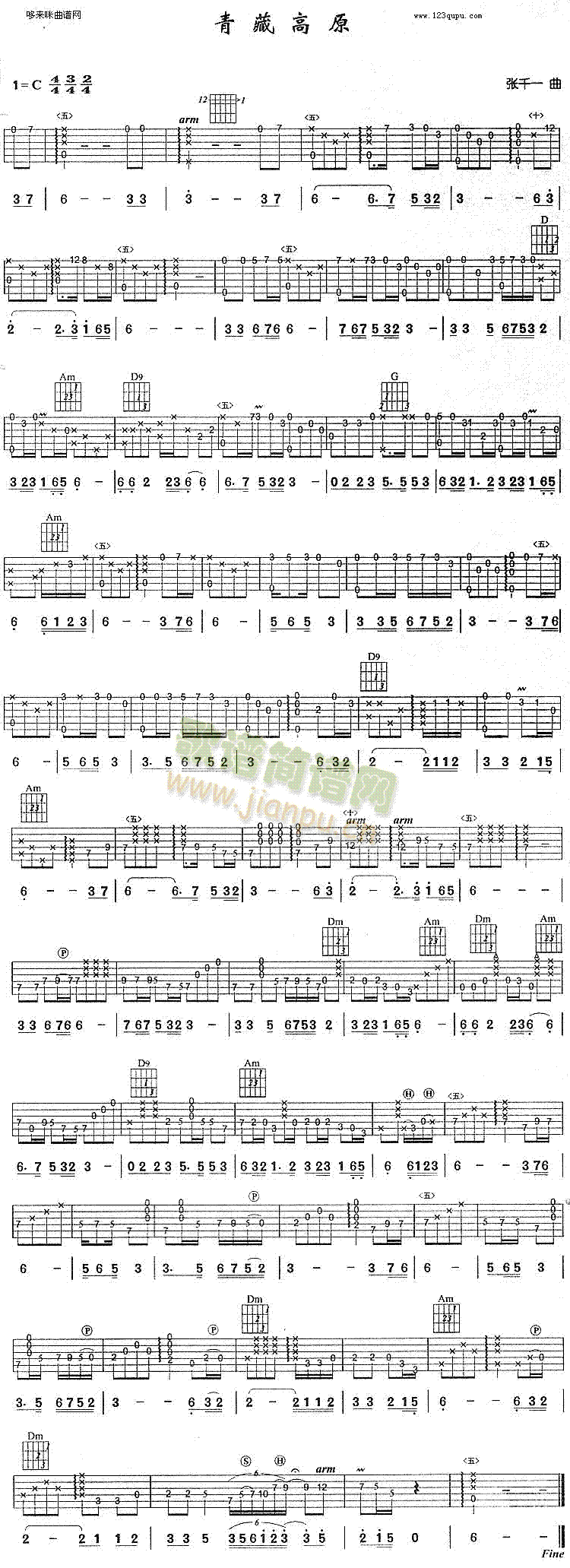 [吉他谱]青藏高原(电视《天路》片头曲、独奏曲) 未知