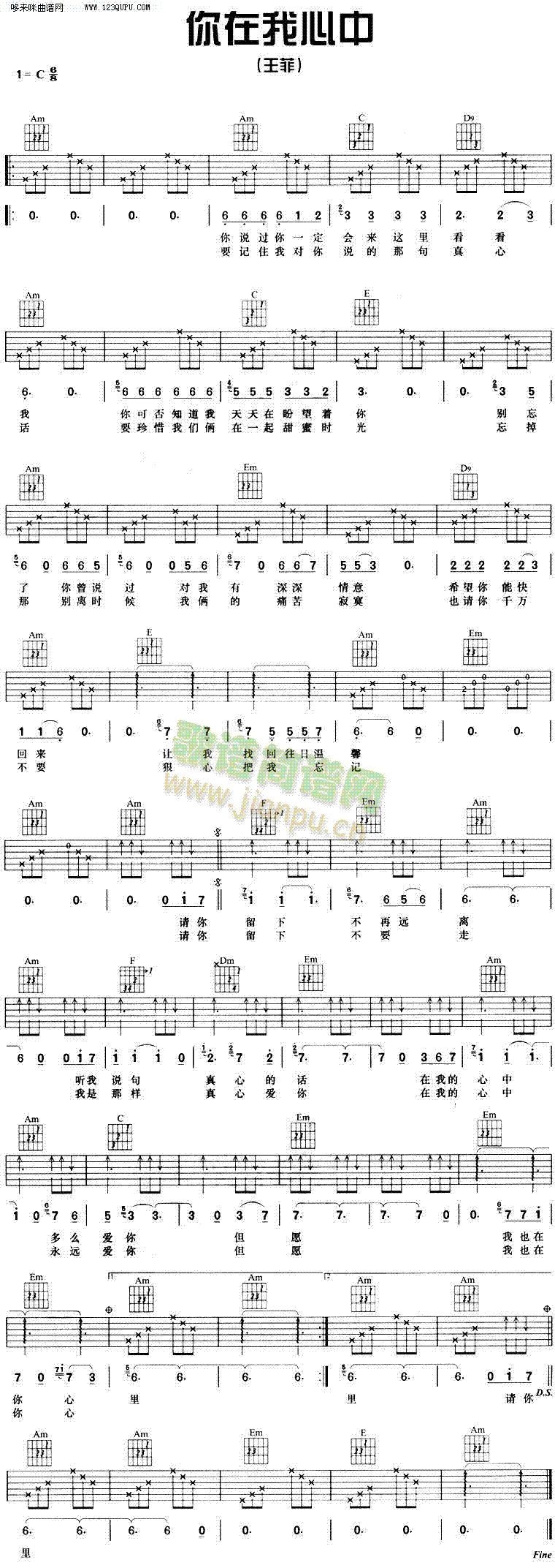 [吉他谱]别问旧伤口—辛晓琪 未知