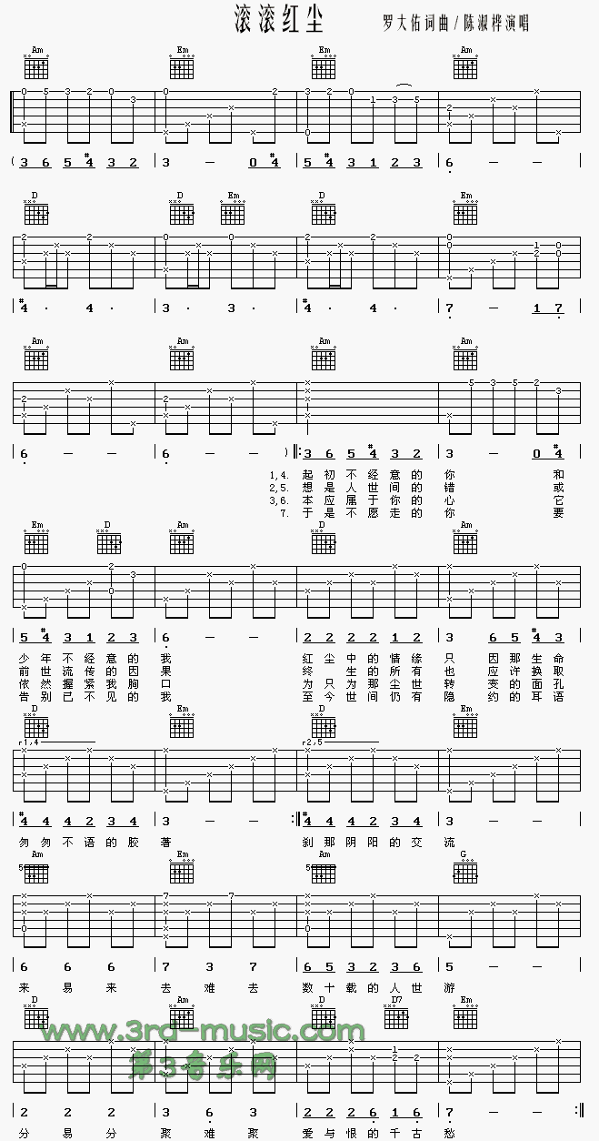 [吉他谱]滚滚红尘(同名电视剧插曲) 罗大佑