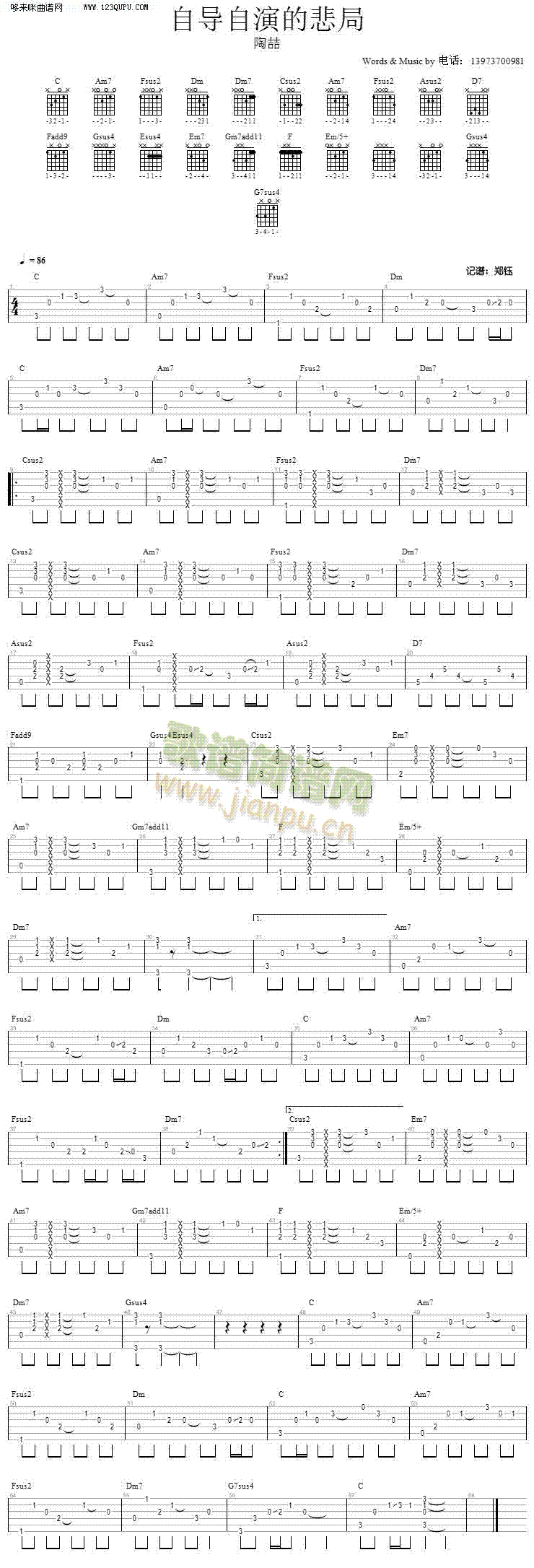 [吉他谱]自导自演的悲剧 陶吉吉