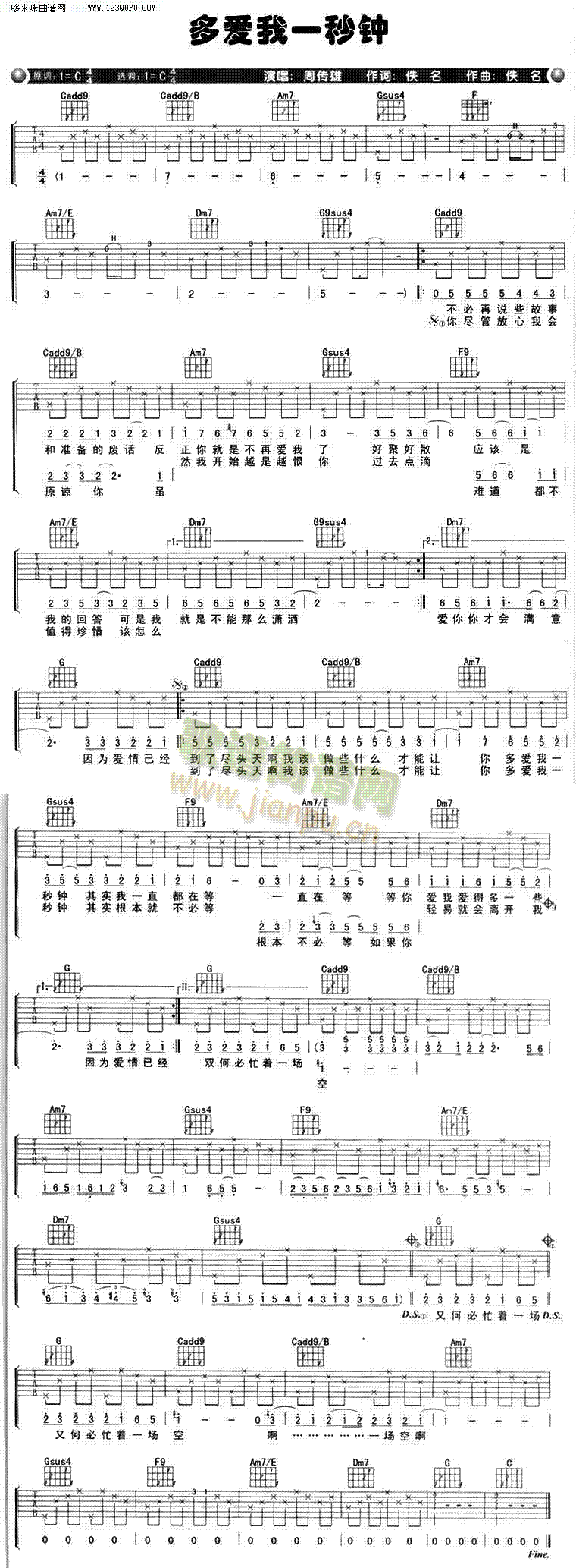 [吉他谱]多爱我一秒钟—周传雄 未知