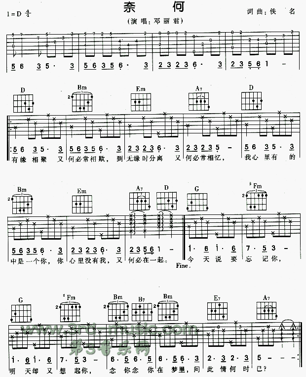 [二字歌谱]奈何(《还珠格格Ⅲ》片尾曲)