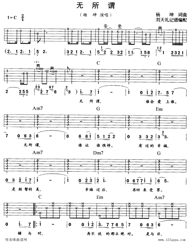 [吉他谱]无所谓 (杨坤) 未知
