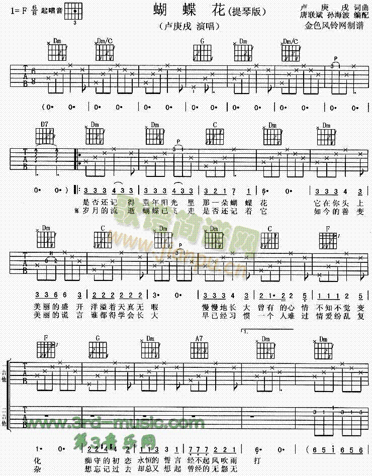 [吉他谱]蝴蝶花(卢庚戌) 未知