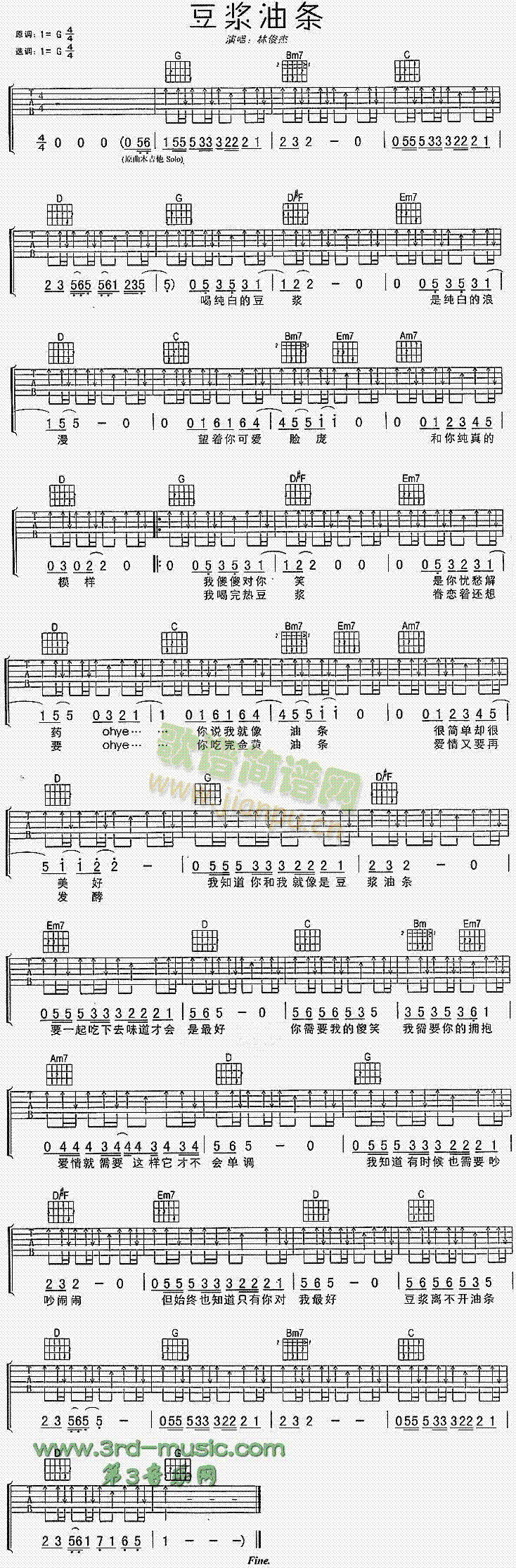 [吉他谱]豆浆油条吉他谱( 六线谱)- 未知