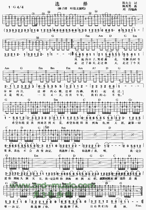 [吉他谱]选择 (林子祥 叶倩文 ) 未知