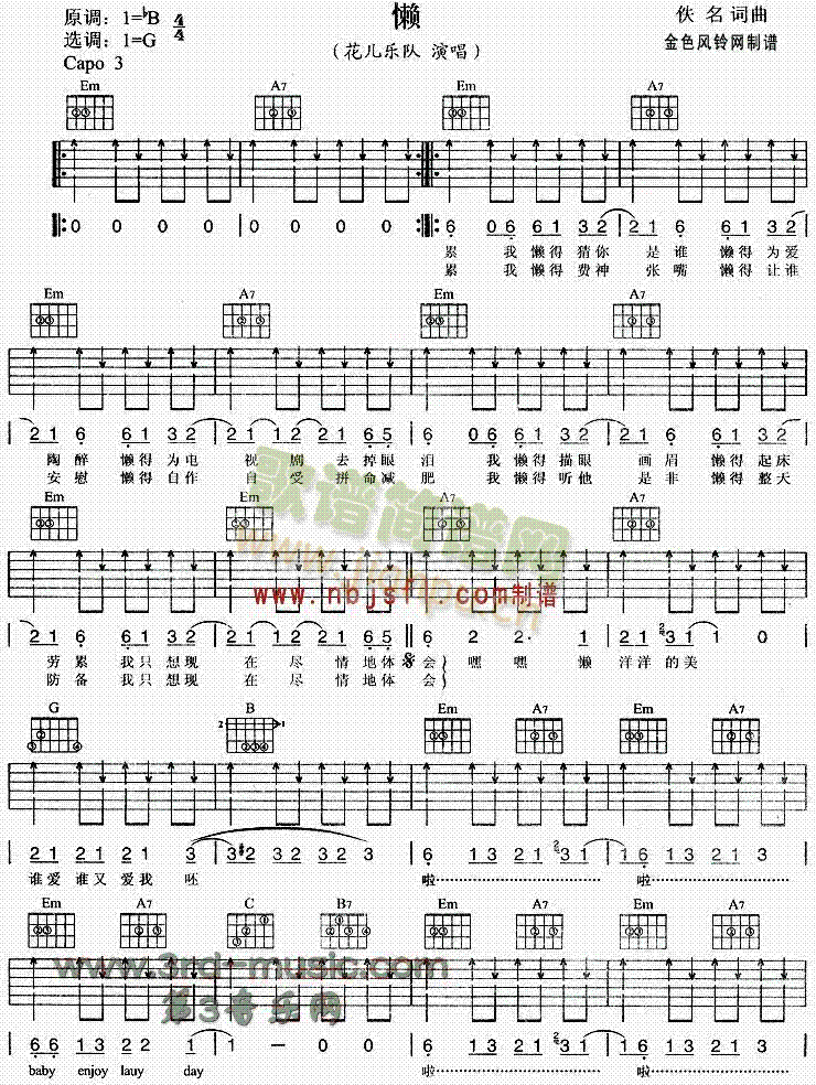 [吉他谱]叶子(《蔷薇之恋》片尾曲) 未知
