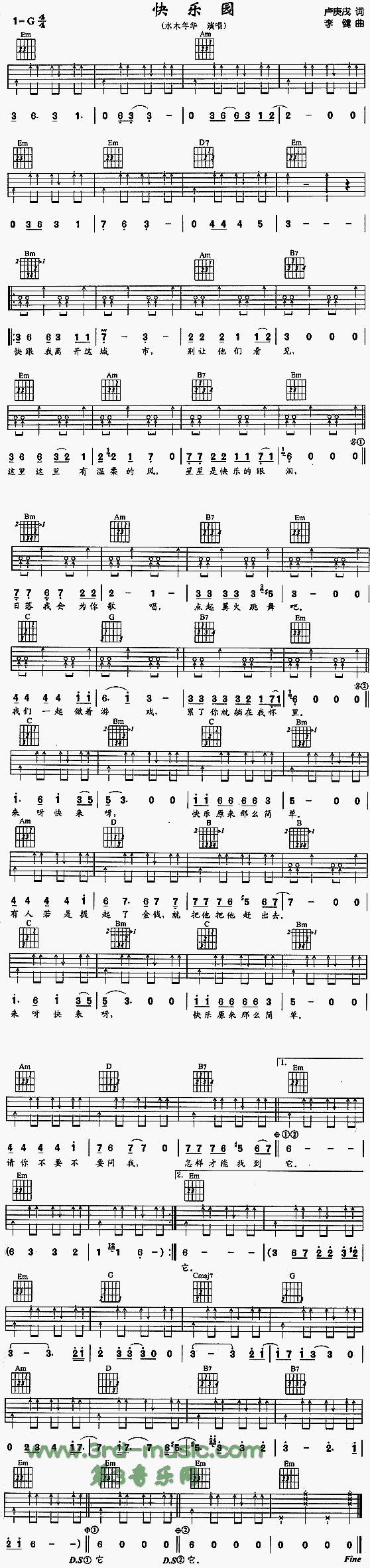 [其他乐谱]快乐园-弹唱 吉他类 流行 水木年华