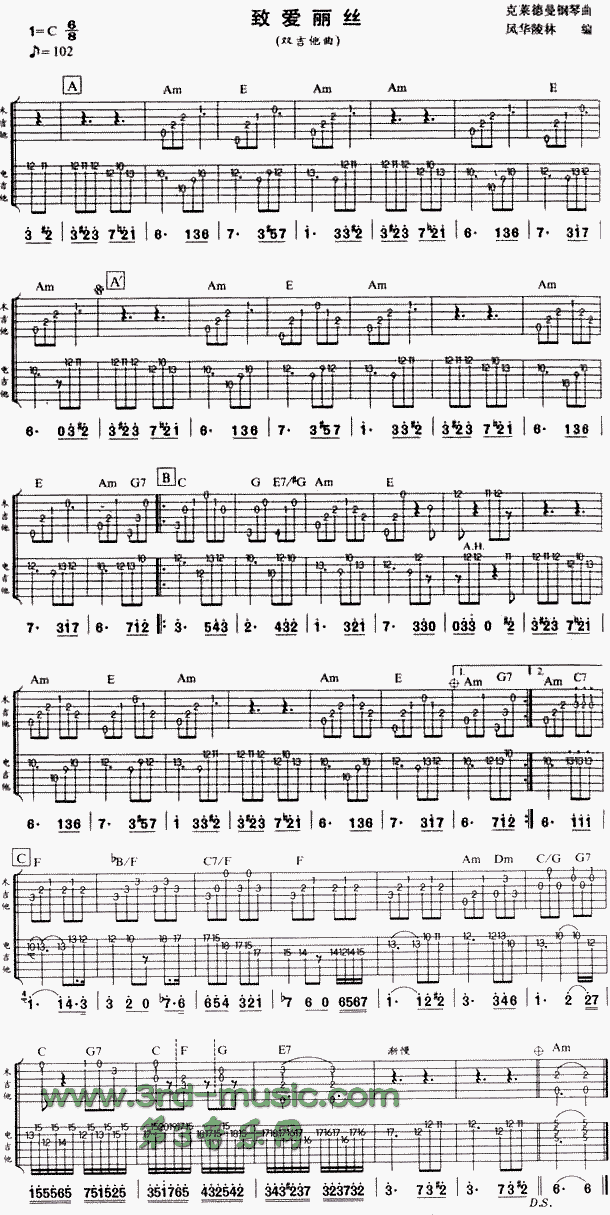 [吉他谱]致爱丽丝(独奏曲) 未知