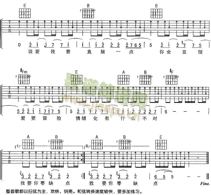 [吉他谱]零缺点 (孙燕姿/总谱) 未知