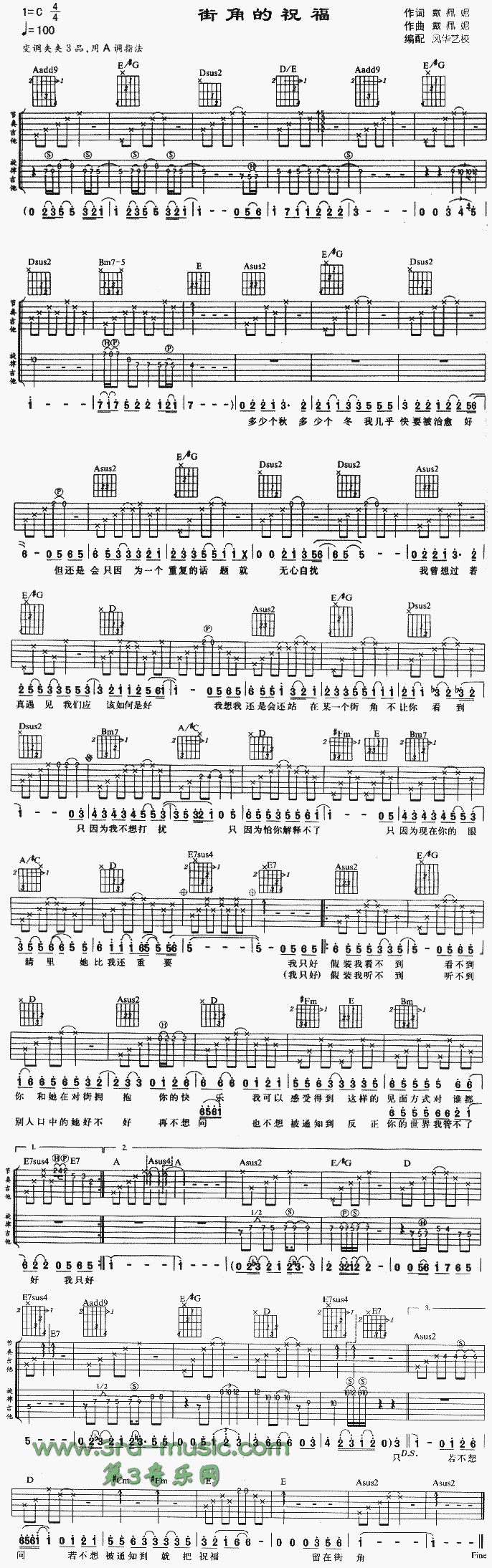 [吉他谱]街角的祝福吉他谱(和弦 GTP 六线谱)- 未知