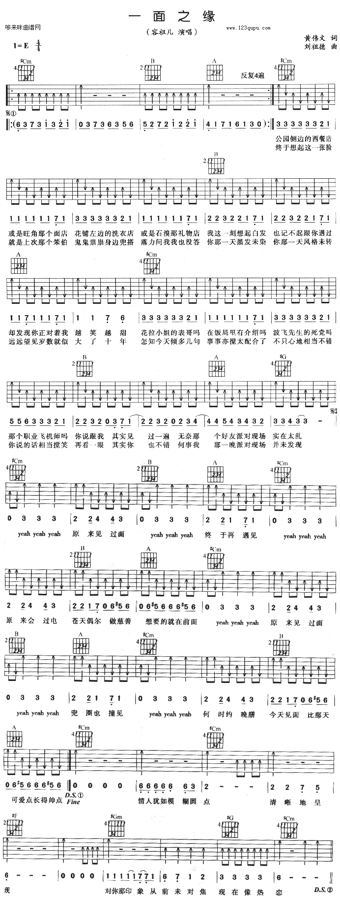 [吉他谱]一面之缘 容祖儿