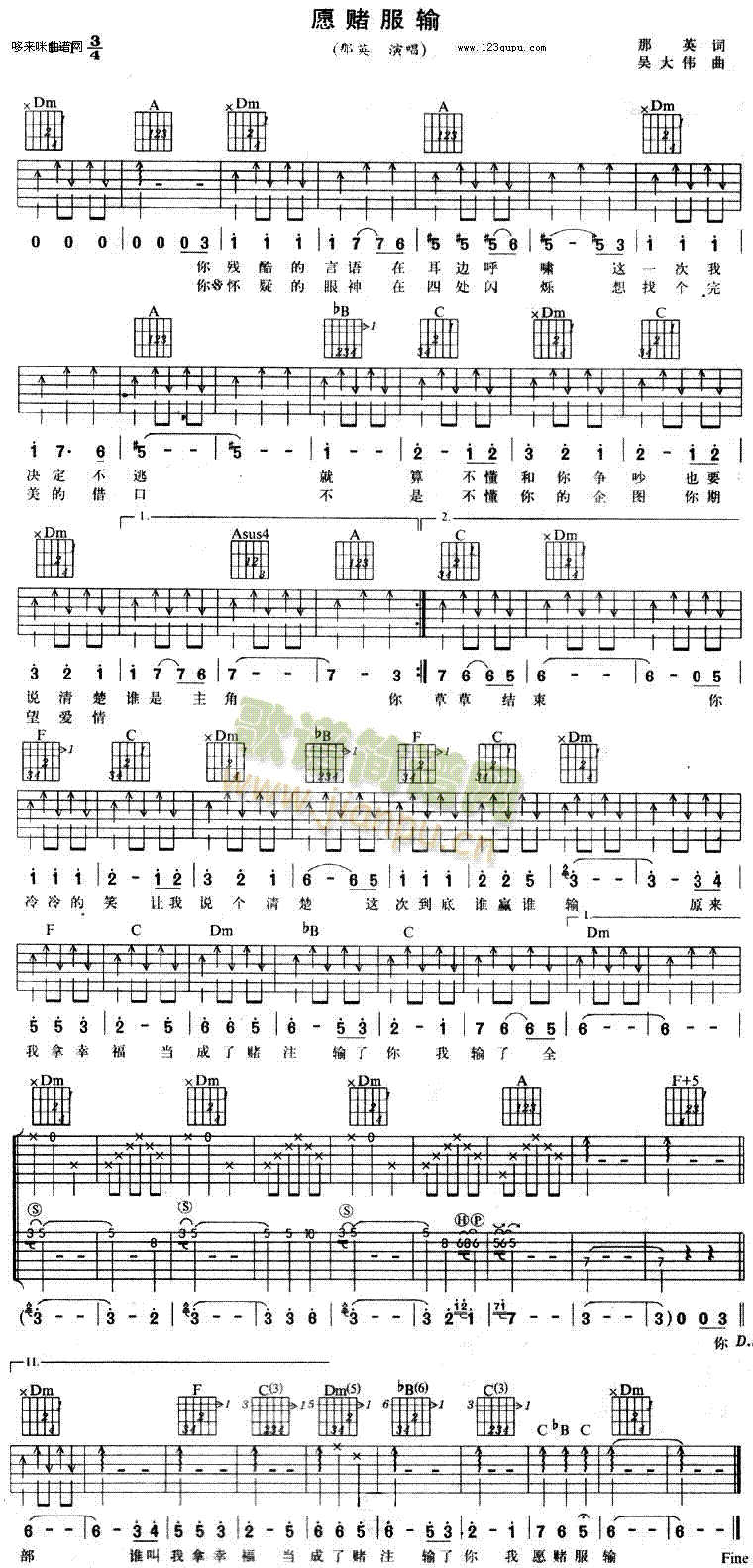 [其他乐谱]愿赌服输 歌曲类 简谱 那英