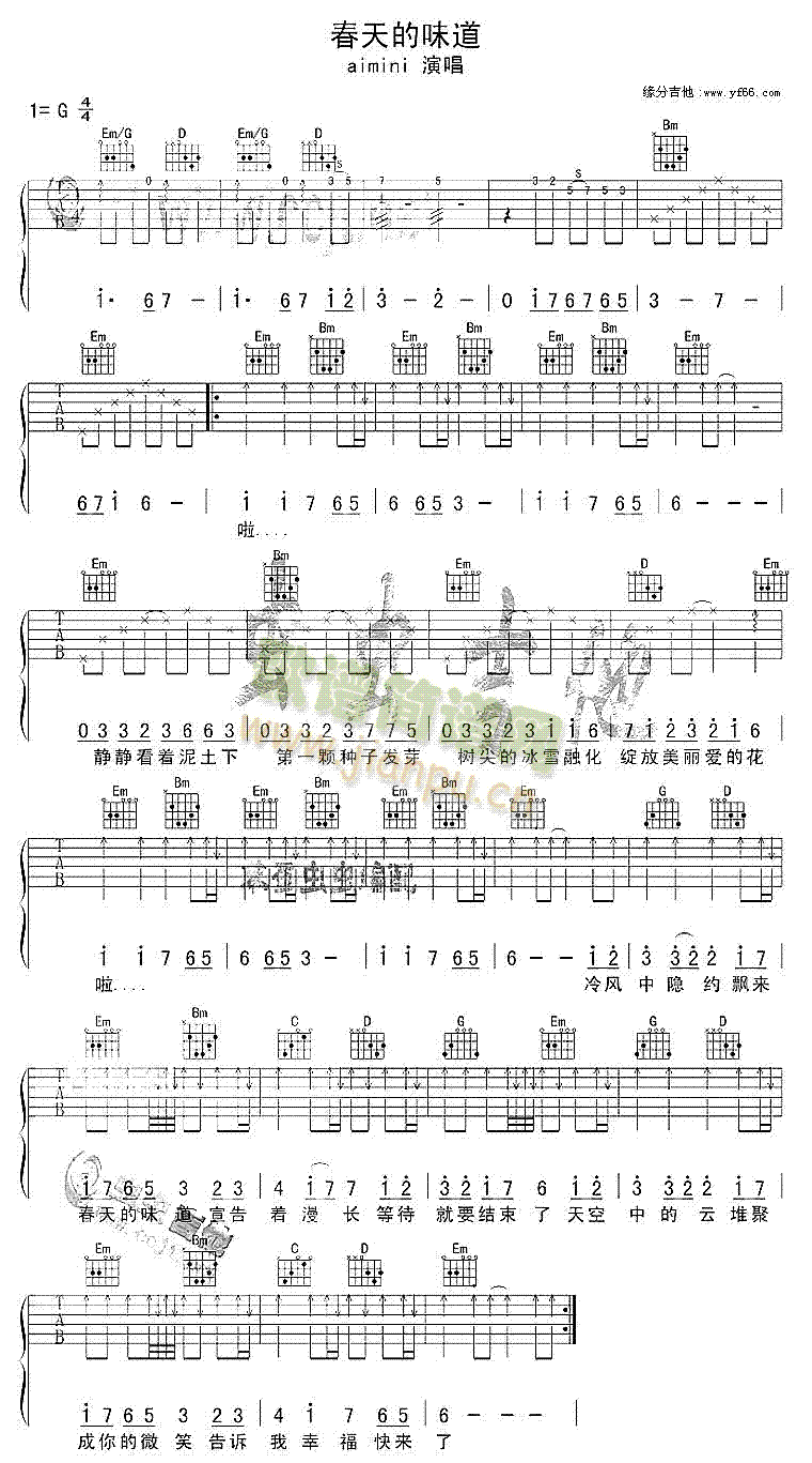 [吉他谱]春天的味道(吉他谱)[高清晰版] AiMiNi