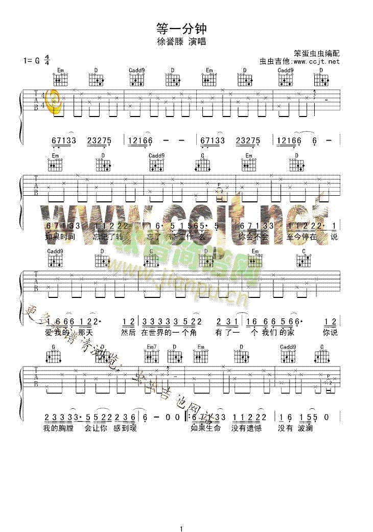 [吉他谱]缘分五月吉他谱( 六线谱)- 未知