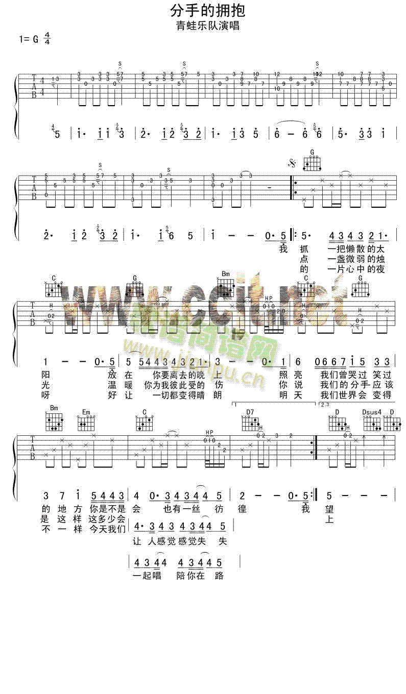 [其他乐谱]分手的拥抱-简易版-弹唱 吉他类 流行 青蛙乐队