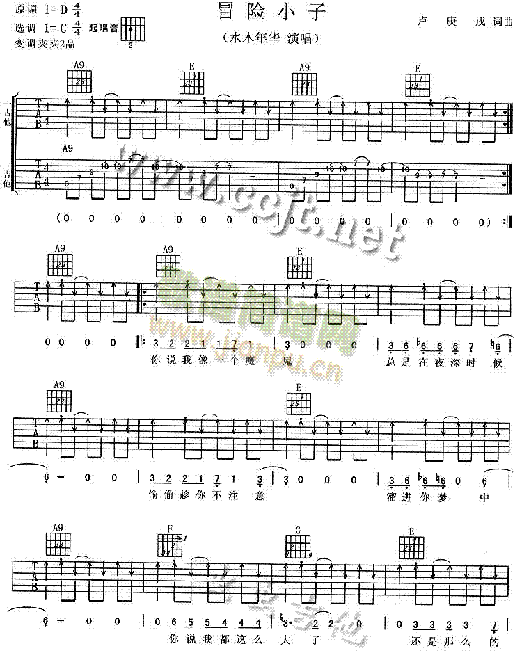 [吉他谱]冒险小子吉他谱( 六线谱)- 未知