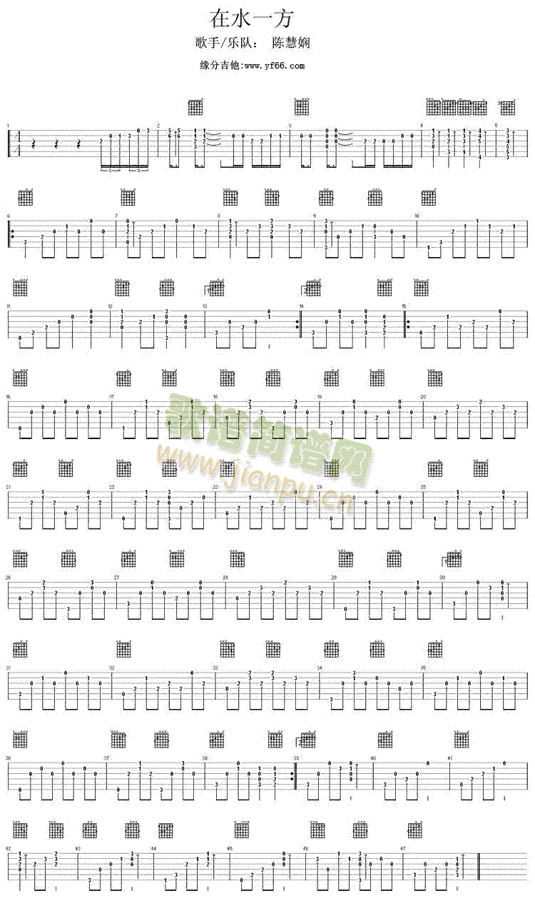 [吉他谱]在水一方