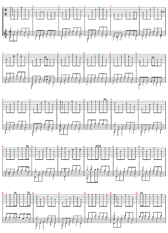 [吉他谱]古风吉他谱( 六线谱) 未知