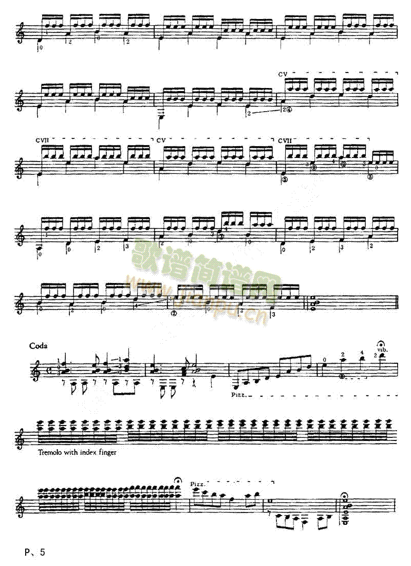 [吉他谱]樱花 吉他独奏谱(五线谱) 全把位练习