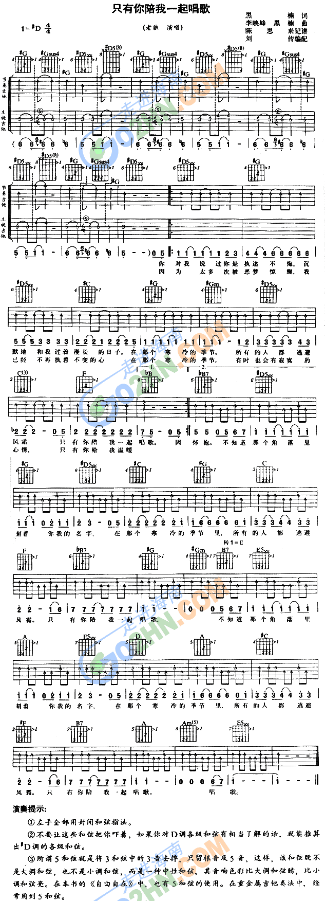 [其他乐谱]只有你陪我一起唱歌 歌曲类 简谱 老狼