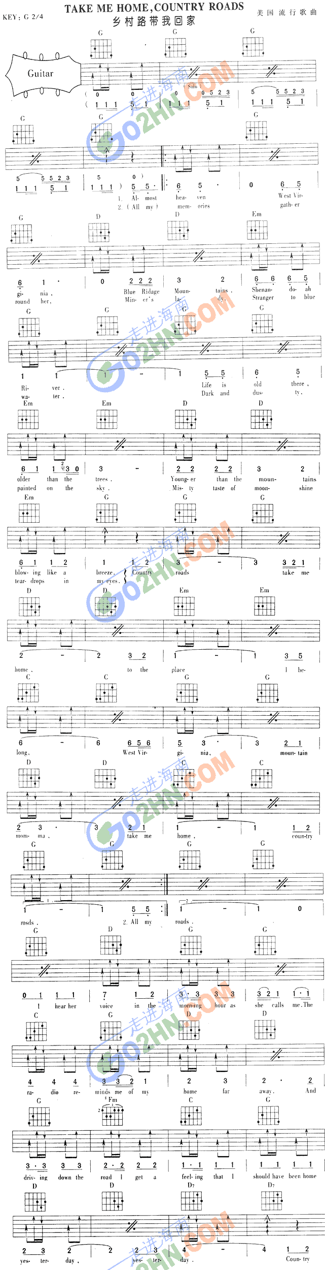 [吉他谱]TAKE ME HOME COUNTRY ROADS 未知