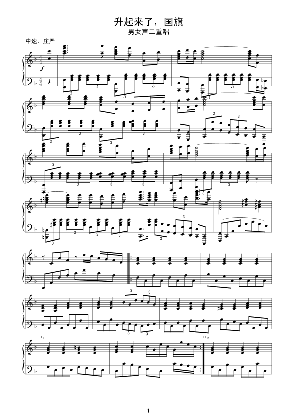 [七字歌谱]升起来了,国旗(男女二重唱)