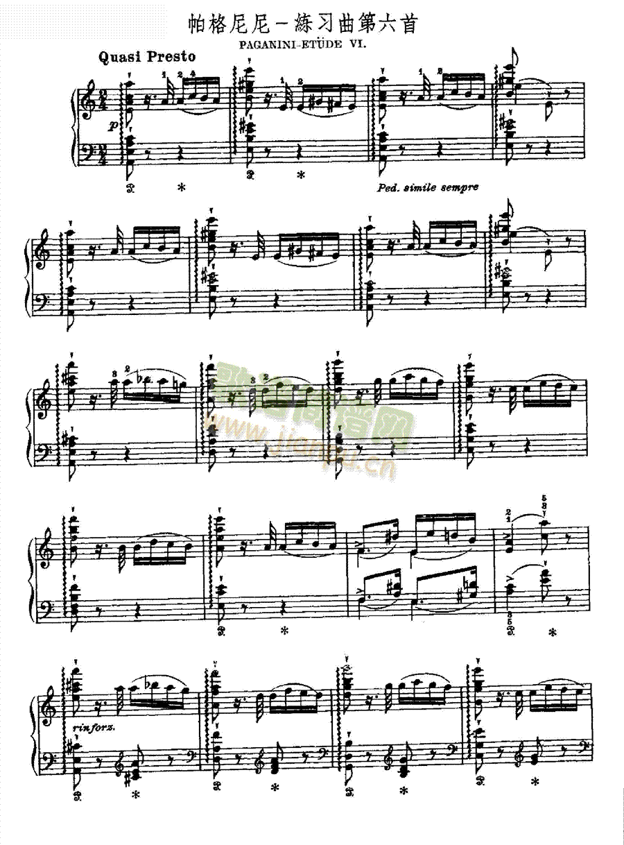 > 帕格尼尼-练习曲第六首 键盘类 钢琴