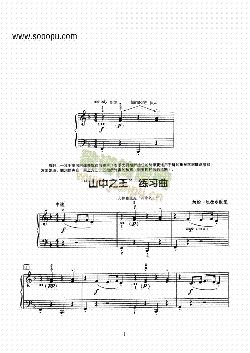 [钢琴谱]山中之王练习曲 键盘类 钢琴 约翰·坎德尔配置