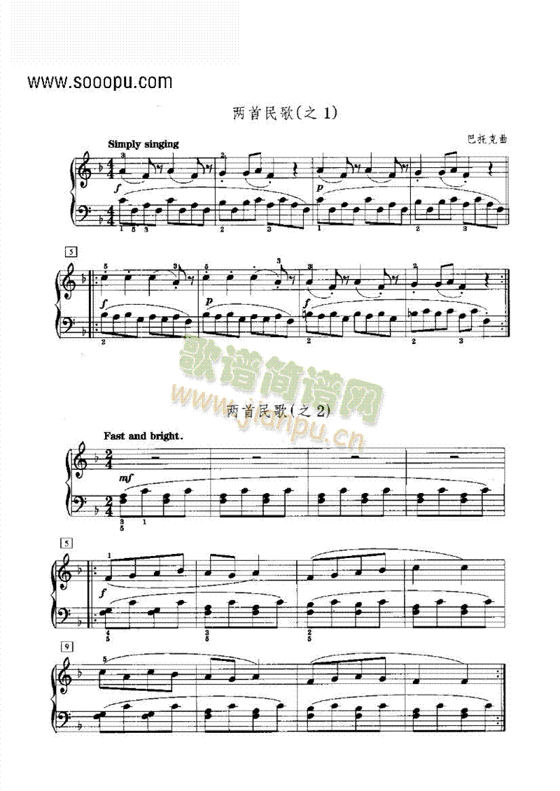 [钢琴谱]两首民歌 键盘类 钢琴 儿童钢琴