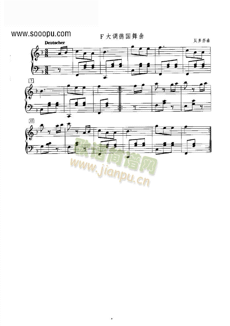 [钢琴谱]F大调德国舞曲 键盘类 钢琴 儿童钢琴