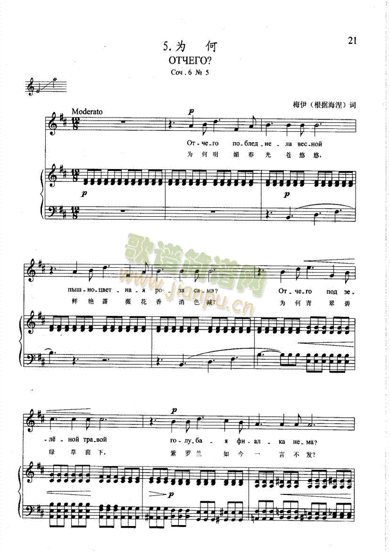 [钢琴谱]为何(钢伴) 歌曲类 钢琴伴奏谱 柴科夫斯基