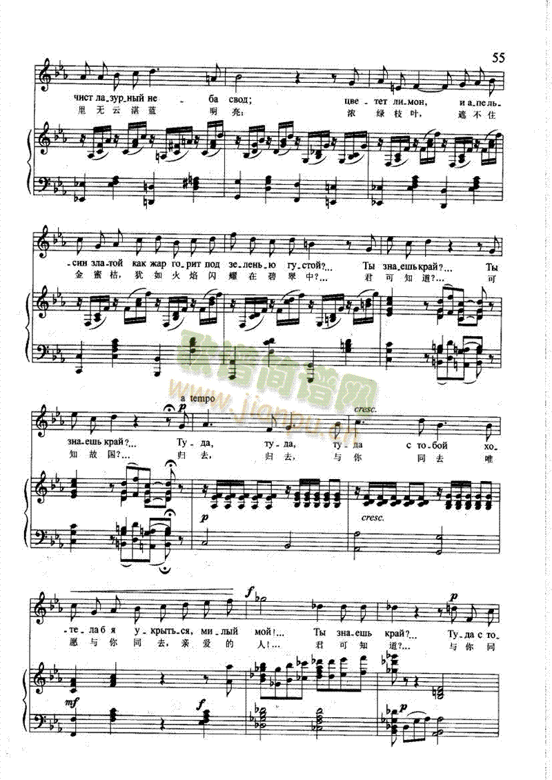 [钢琴谱]迷娘之歌(钢伴) 歌曲类 钢琴伴奏谱 柴科夫斯基