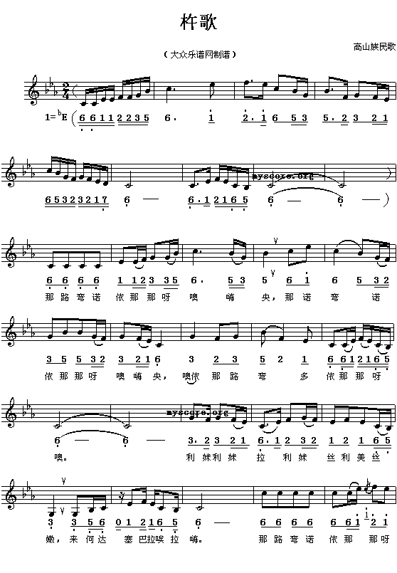 [其他乐谱]杵歌 键盘类 钢琴 民歌