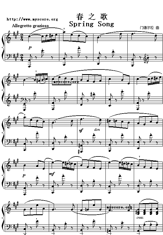 [钢琴谱]春之歌-门德尔松 未知