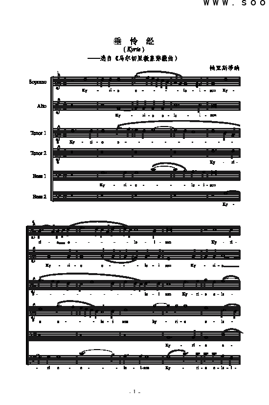 [钢琴谱]垂怜经 合唱谱 帕里斯基纳