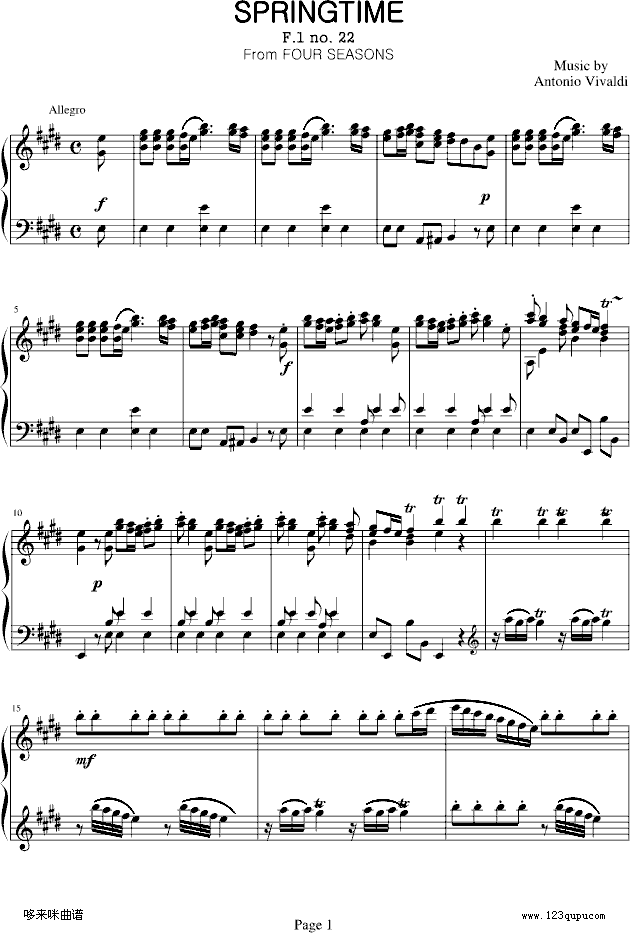 [钢琴谱](意)维瓦尔第“四季的春”:春的信息 未知