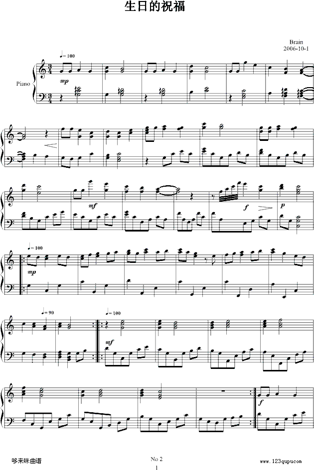 [九字歌谱]十月是你的生日中国[合唱曲谱] 未知