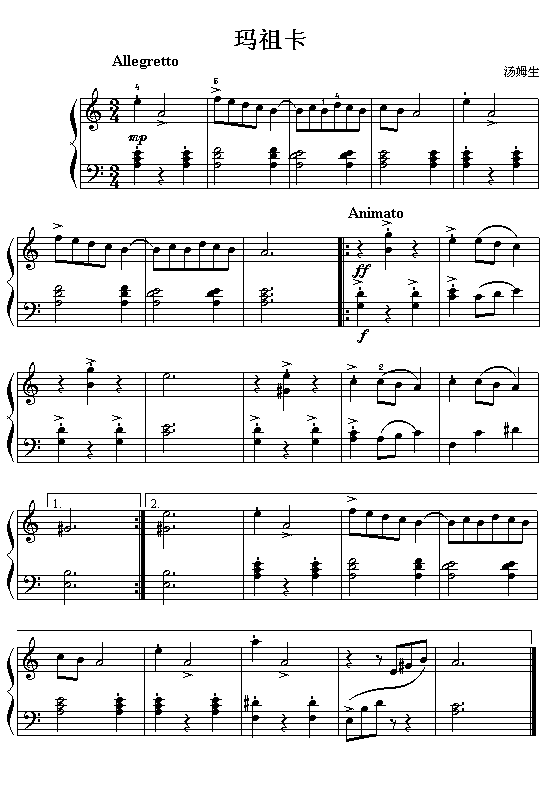 [钢琴谱](美)汤姆生:玛祖卡 未知