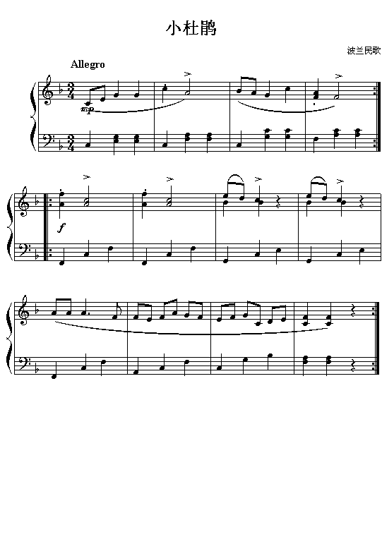 [钢琴谱]波兰民歌:小杜鹃 未知